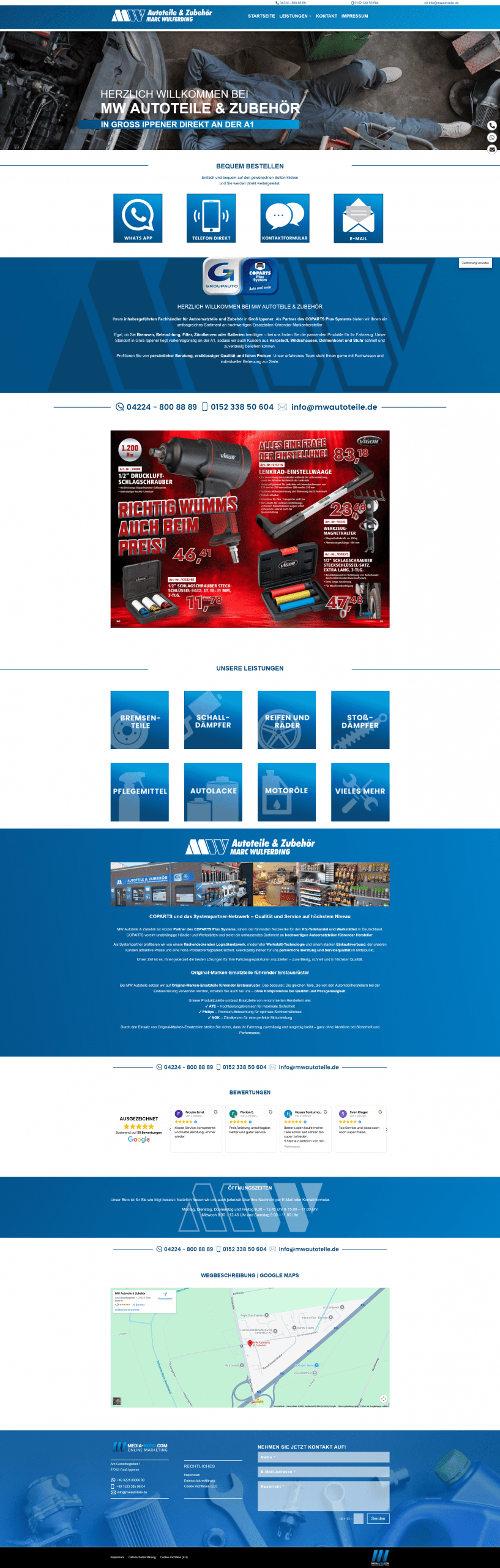 Wir präsentieren ein Projekt, bei dem es um zuverlässige Technik und höchste Qualität geht: die Neue Webseite für MW Autoteile in Groß Ippener. Diese Webseite ist ein perfektes Beispiel dafür, wie wir mit professionellem Webdesign aus Stuhr die Stärken unserer Kunden digitalisieren.